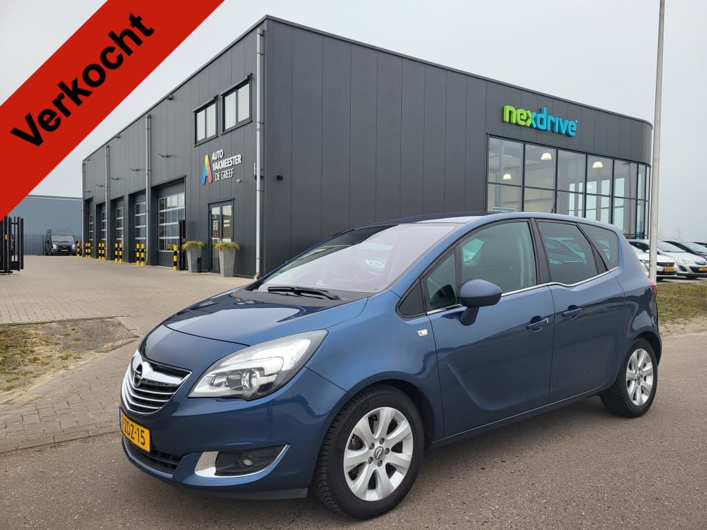 Nette, van tweede eigenaar afkomstige en goed onderhouden Opel Meriva met krachtige 1.4 Turbo motor (120 pk) in complete Cosmo uitvoering met o.a. cruise-control, climate-control, vol lederen interieur, stoelverwarming, parkeersensoren, navigatie en trekhaak